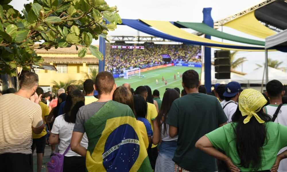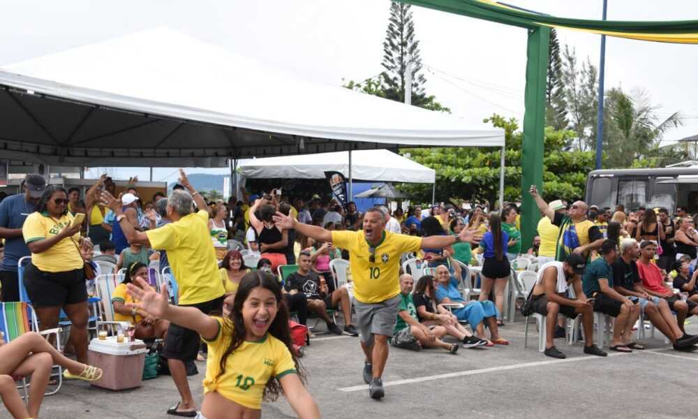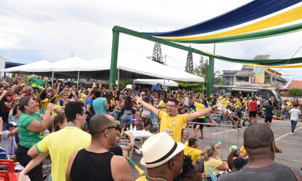 Maricaenses e turistas comemoram a classificação do Brasil às quartas de final da Copa do Mundo nos espaços disponibilizados pela Prefeitura de Maricá para transmissão dos...